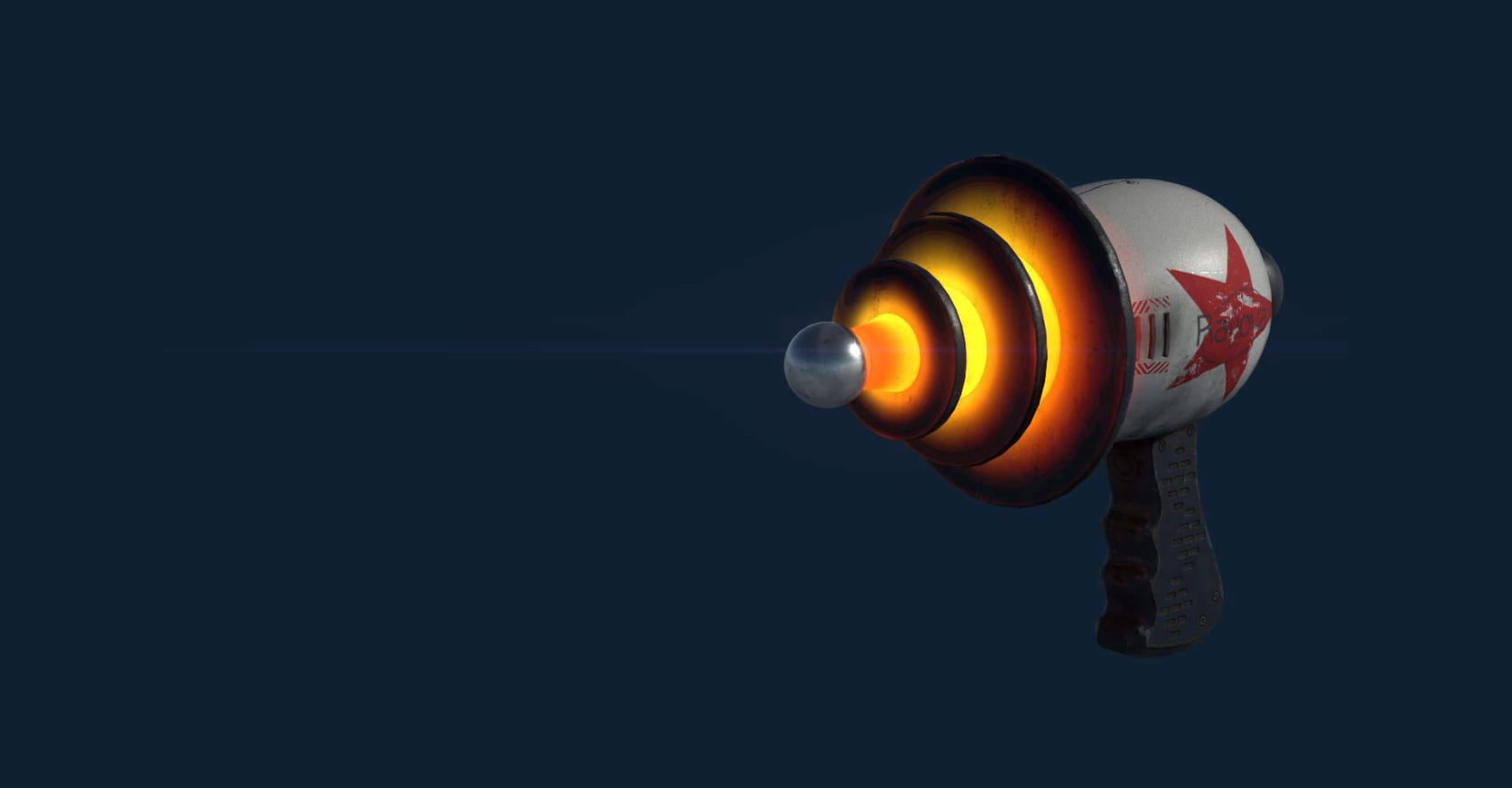 3D model and render of the Rayova ray-gun used in the company's secondary branding.