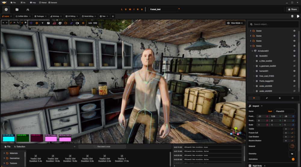 To power the game, we've developed our own custom engine called Lumina, built on WebGL. Lumina includes a range of advanced features such as inverse kinematics, node-based post-processing, and modern shading techniques like cascaded shadow maps and screen space ambient occlusion.